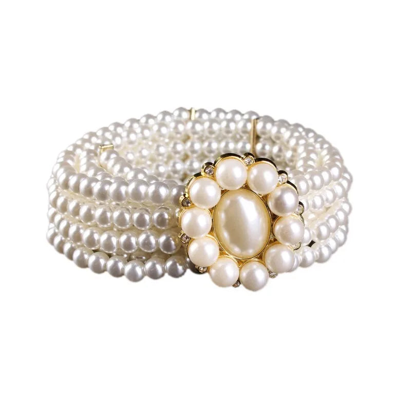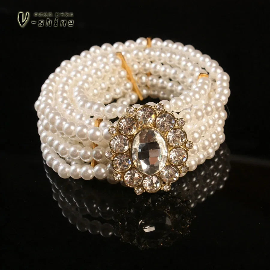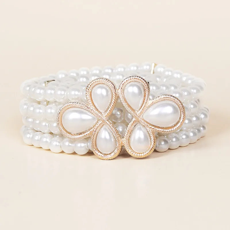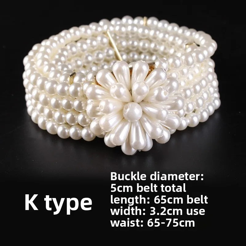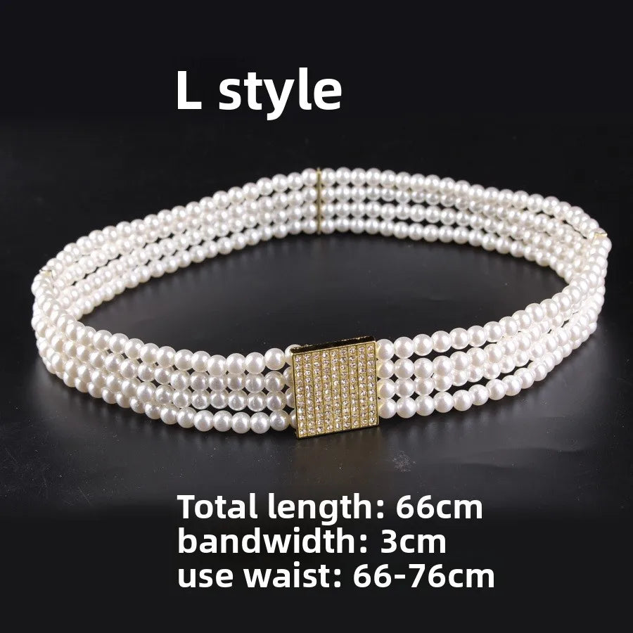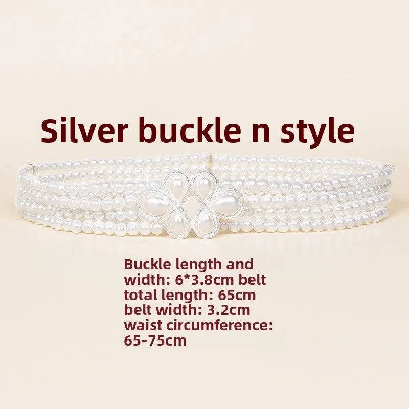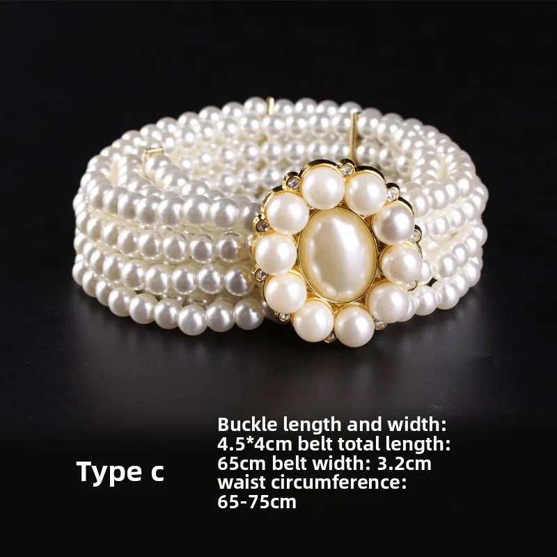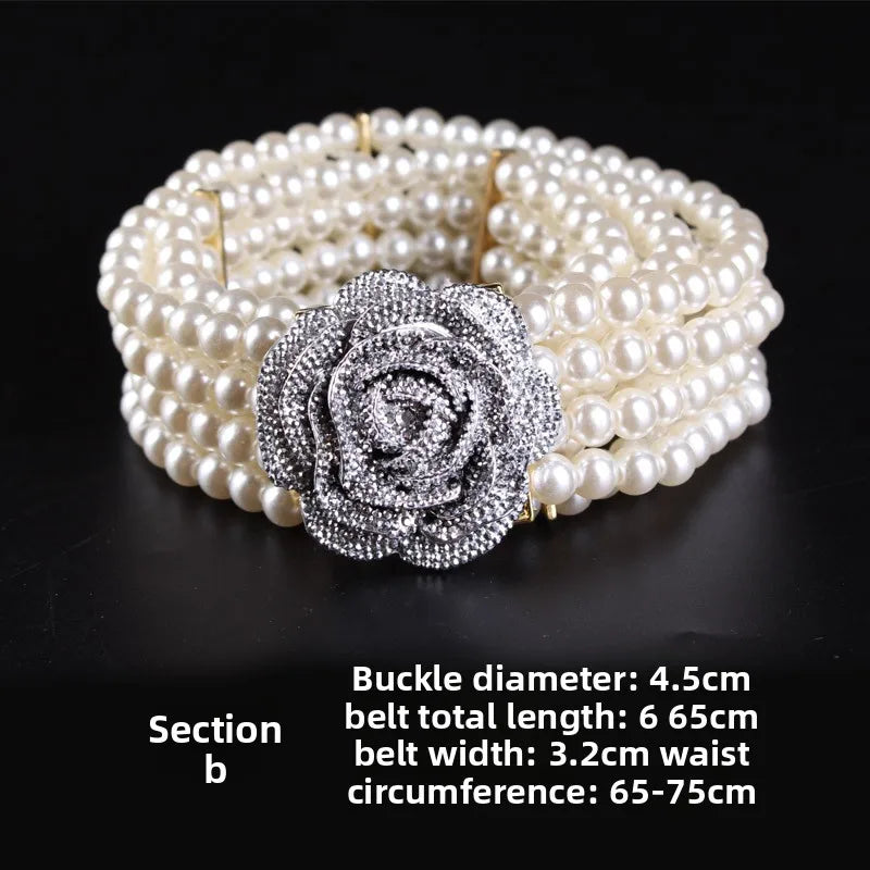 Elegant Four Rows Pearl Decorative Waist Belt Elastic Band Rhinestone Flower Waist Chain Hanfu Women's Fashion Accessory