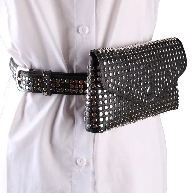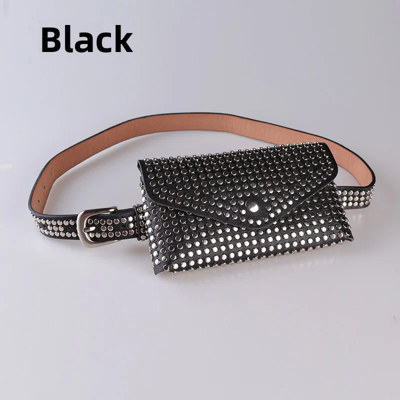 Punk Style Rivet Waist Bag Belt Women's Mobile Phone Purse Simplicity Style Artificial Leather Alloy