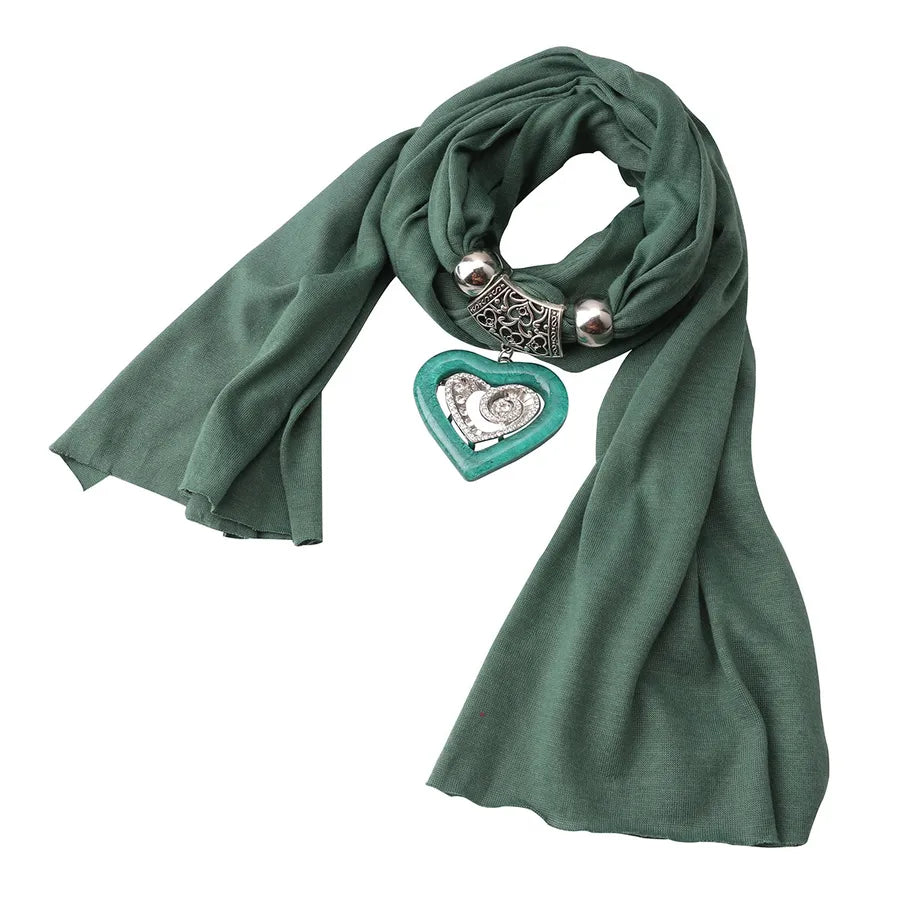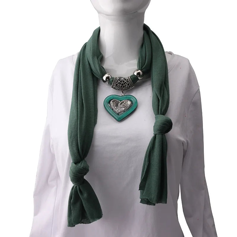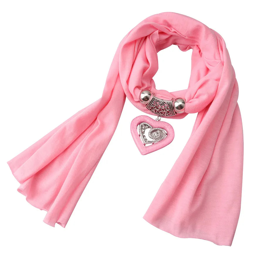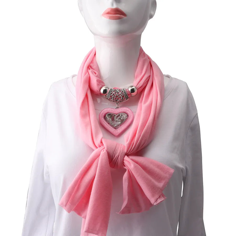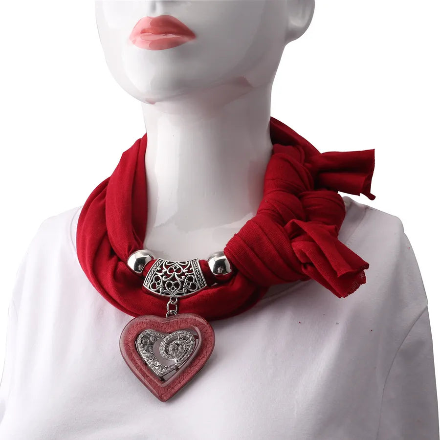 Love Heart Hanbok Alloy Necklace Scarf Cross Mirror Ethnic Style Women's Fashion Accessories Pure Color Polyester Scarf