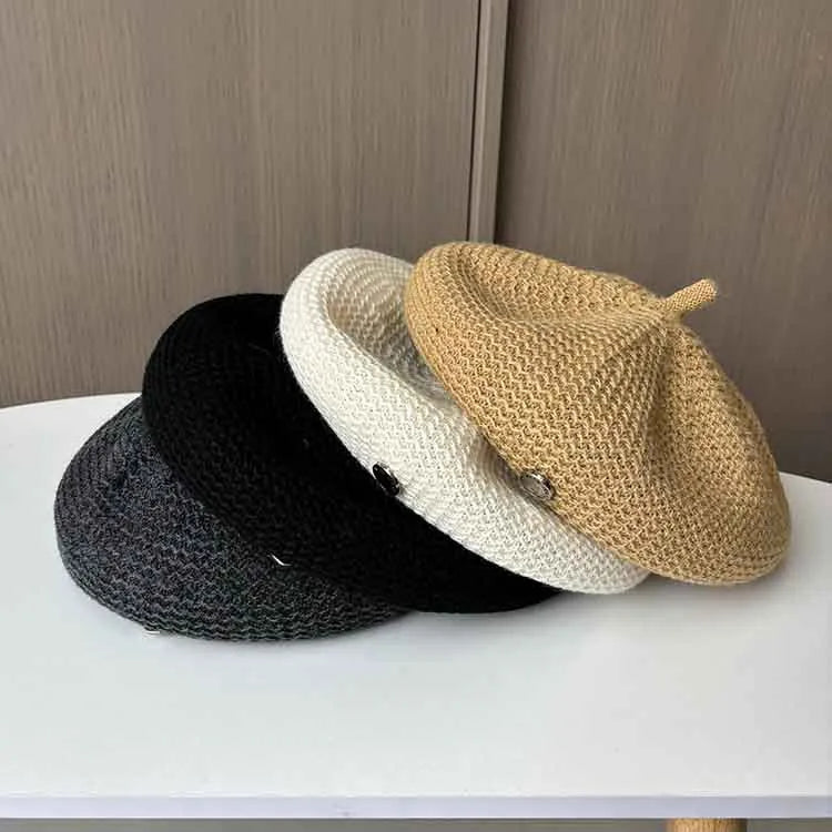 New New Style Knitted Beret Hat Women Autumn Winter Simple Solid Color Casual Painter Hat Face Slimming Bud Hat