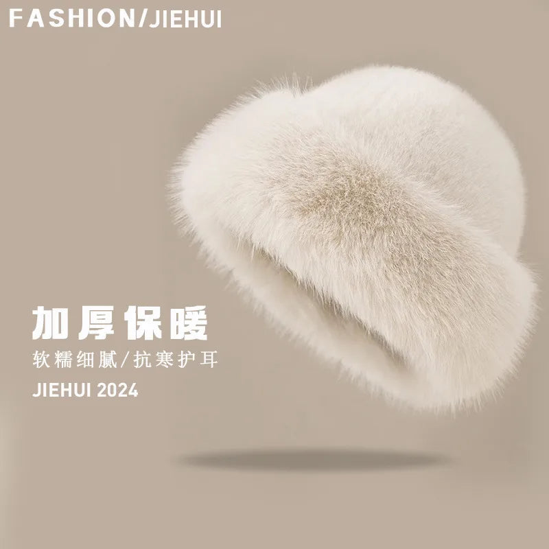 Warm Woolen Beret Style Hats For Women Winter Fashionable Furry Russian Cap Fisherman Bucket Hat New Version Alluring Cute